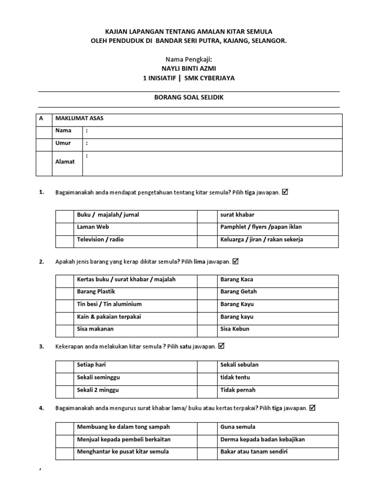 Contoh Soal Selidik Kitar Semula T1 2017 2